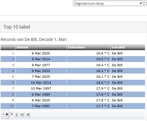 Desondanks geen enkele dag in de top 10 decade 1 voor dagmaxima
