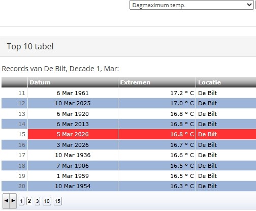 Verder ligt de hoogste waarde van deze reeks ook een graad onder de vereiste om in de top 10 te komen. Dan moet het 17,8C worden, anders plek 11 met evenaring plek 10.