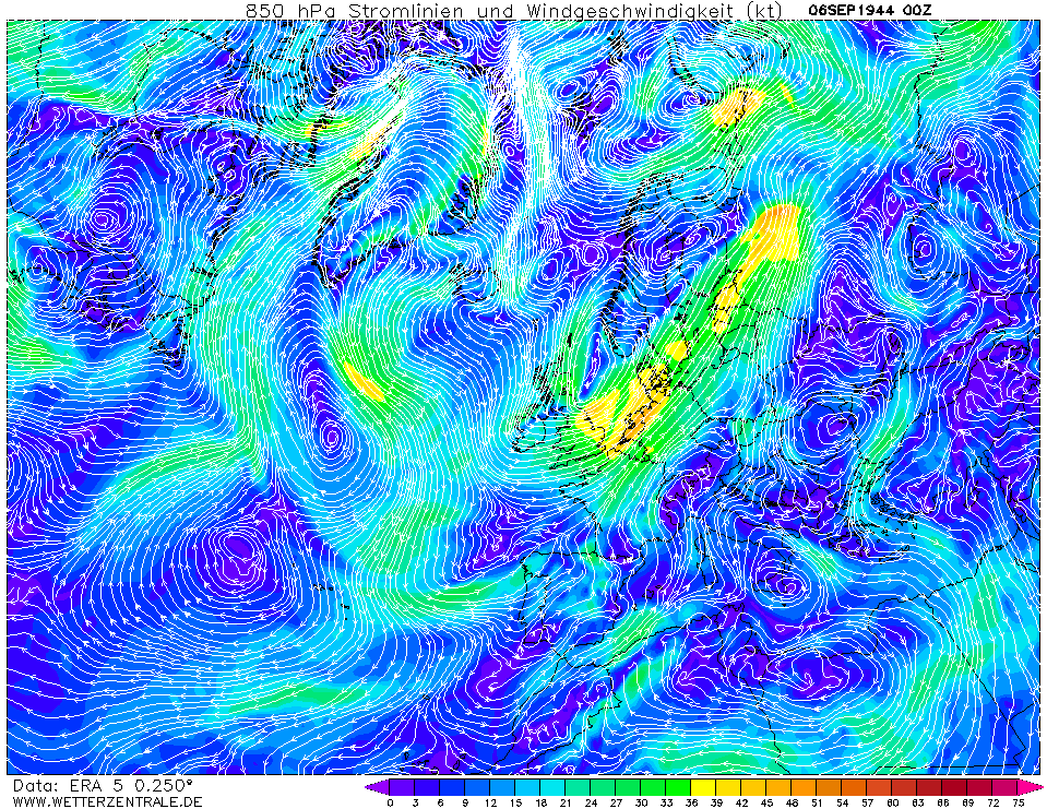 Toch kan Rob Sluijter wel eens gelijk hebben. Als je de T850 van de ERA5 en NOAA reanalysis bekijkt dan zien we de dag ervoor een thermisch lagedrukgebied bij Bordeaux liggen dat in de avond en nacht noordwaarts over Frankrijk trekt en in de ochtend aankomt boven het zuiden van de Benelux. Het thermisch laag ontwikkelt zich gedurende die tijd verder tot een randstoring met aan de oostflank veel wind op enige hoogte.