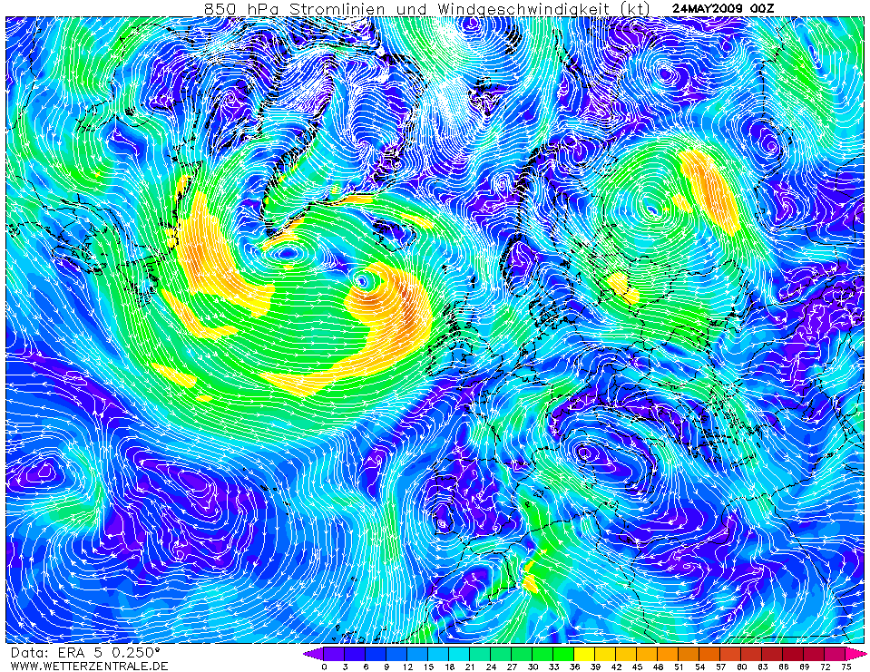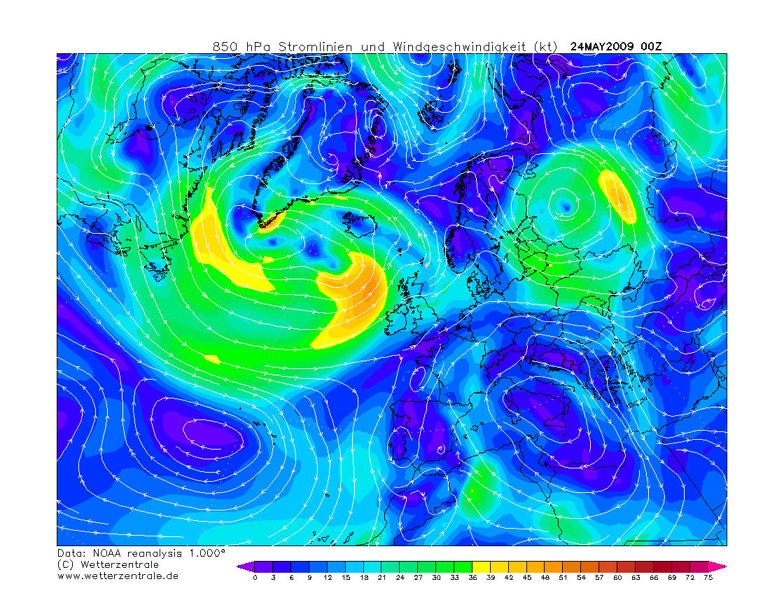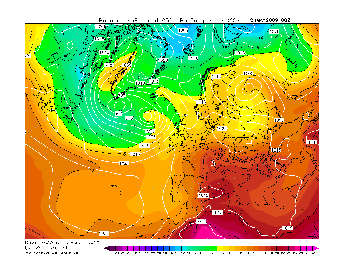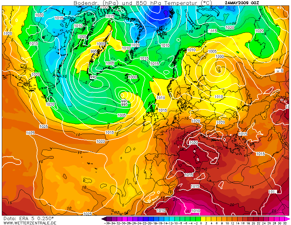 Hieronder de ERA5 en NOAA reanalysis voor 25/26 mei 2009. Ook toen was er sprake van een thermisch laag dat zich ontwikkelde tot een randstoring. Bij de onweersstoring die toen over kwam zijn 's nachts zeer zware windstoten voorgekomen.