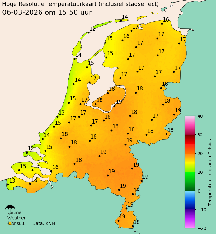 Tact 19,4 graden. Vorig jaar Tx 20,0 graden op 6 maart
