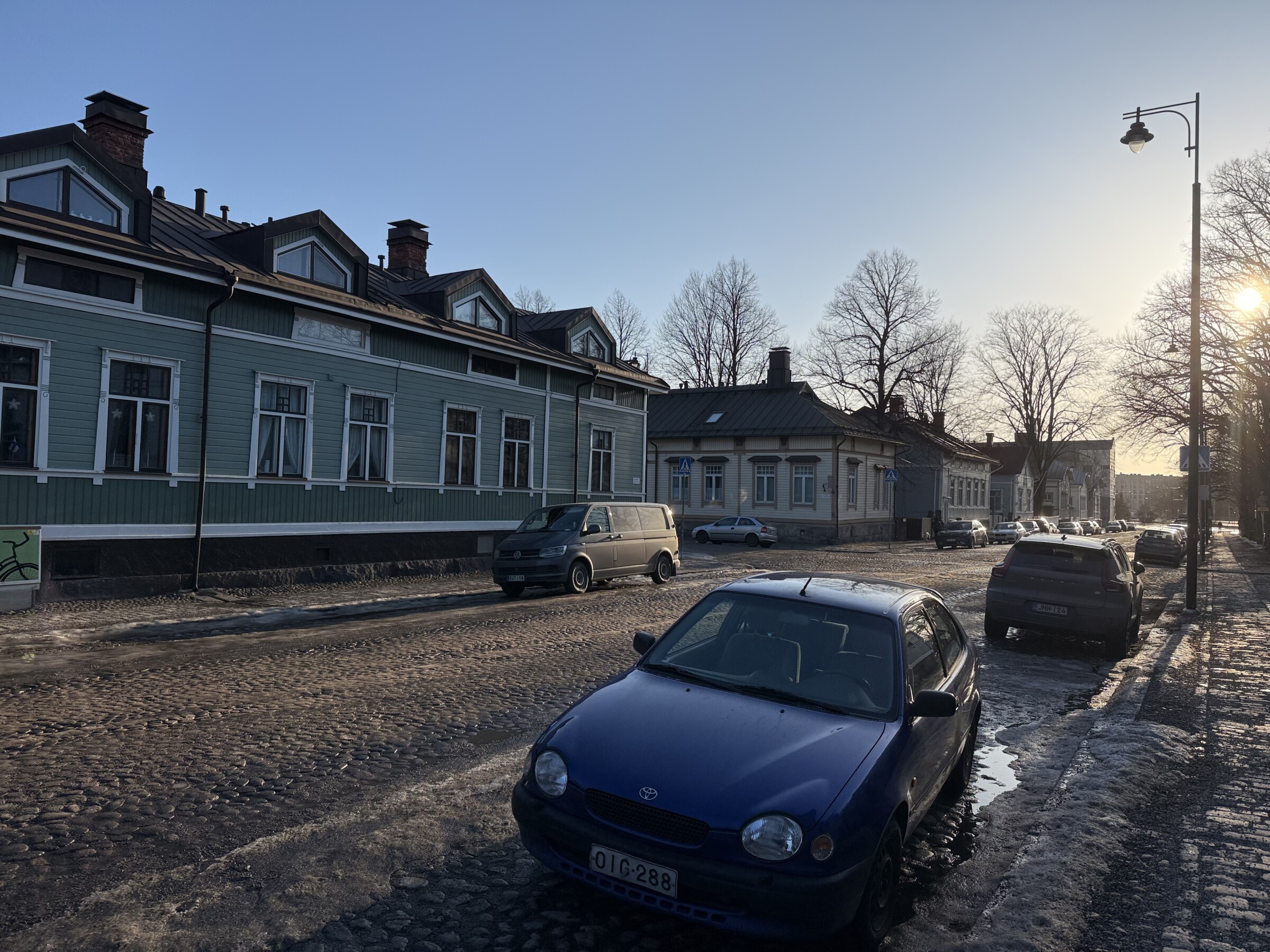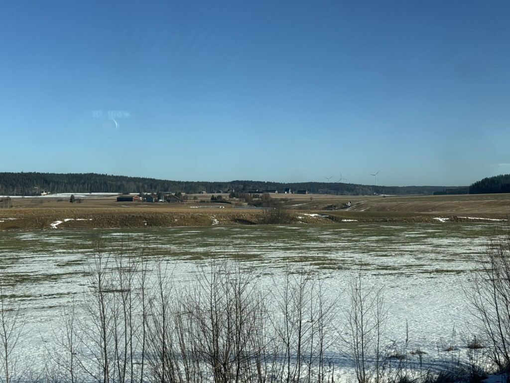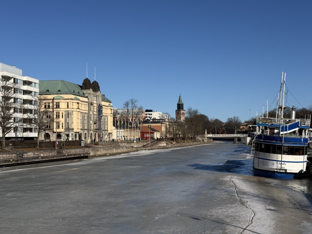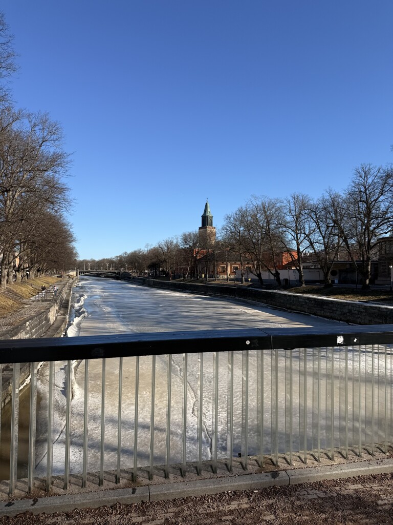 Het is het warmste deel van Finland en daarom is de sneeuw daar al bijna weggesmolten (er lag aanvankelijk al een stuk minder dan in Helsinki). Tijdens de treinreis veranderde het landschap geleidelijk van wit naar overwegend groen. Wel is de rivier de Aura nog bevroren, al waagde niemand er meer overheen te lopen..