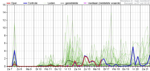 neerslag signaal komende nacht? Andere regio's niet en voornamelijk de controle run. Maar er zijn meer leden met neerslag.