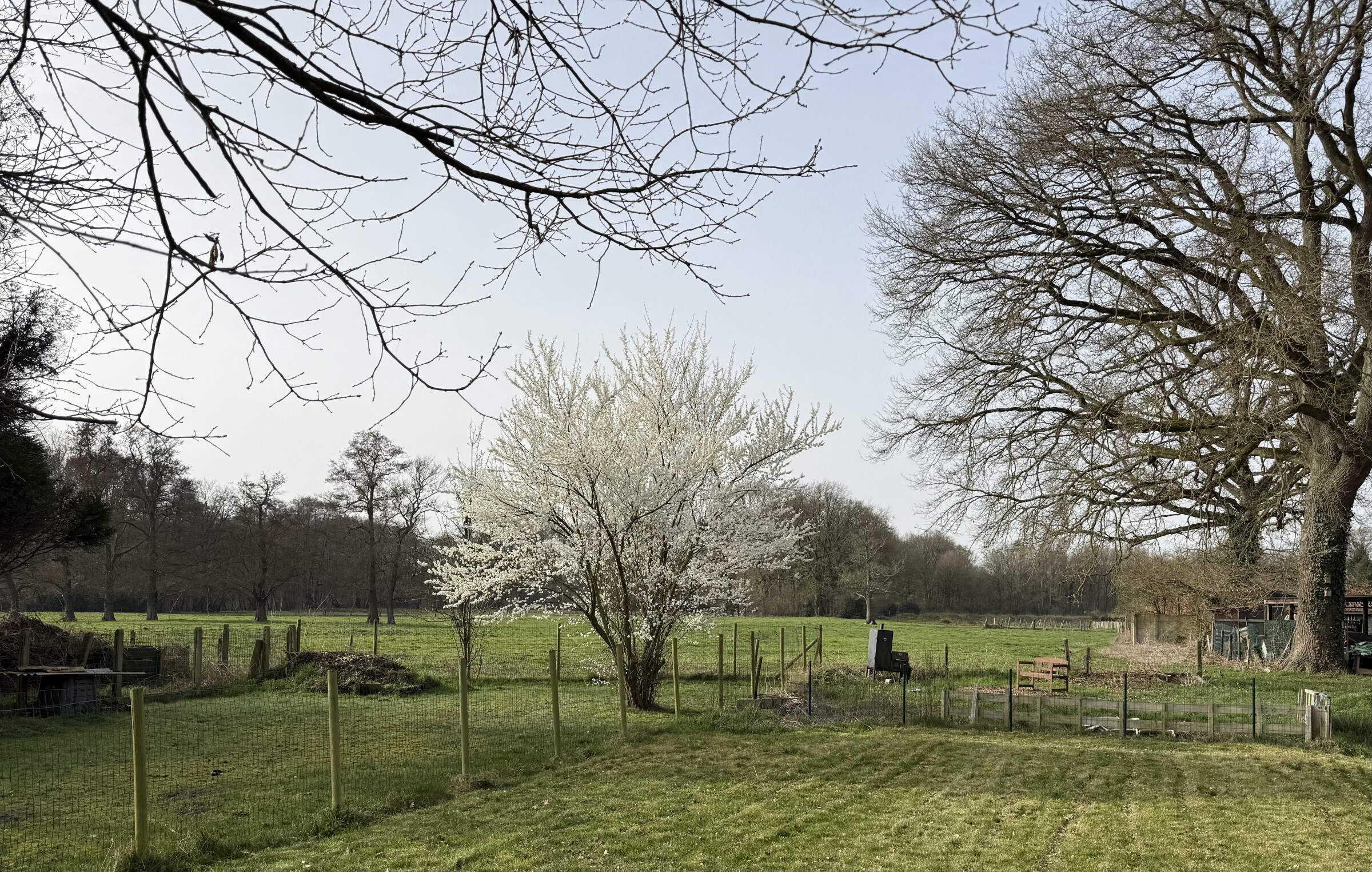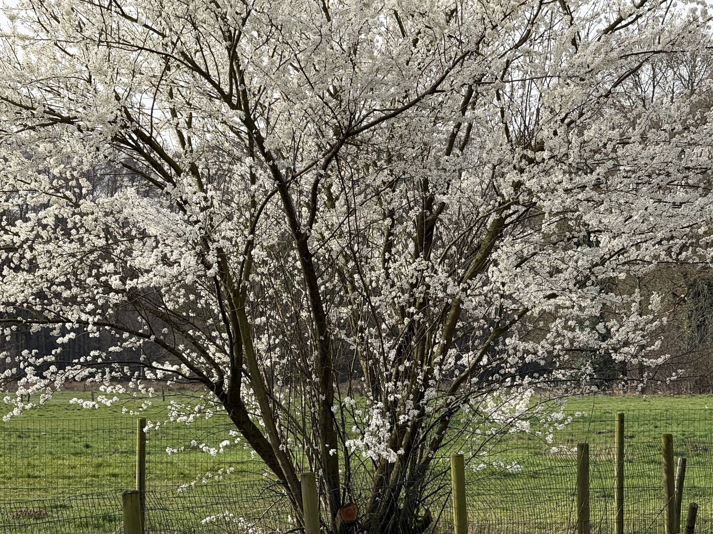te groeien. Heb de plant wel efkes binnen gezet als het ‘s nachts vroor. Verder al heel wat bloesems hier. Gaat snel nu. Deze boom is wel altijd vroeg maar verleden jaar was het na de 17de maart, nadat ik verhuisd ben. Nu al een paar dagen. Er zijn pimpelmezen aan het nestelen onder het dak en in de dakgoot boven mij. Ik hoop niet dat het nu weer gaat vriezen voor die beestjes. Hopelijk zitten die ook onder het dak. Zal wel. Kan niet kijken. Vandaag wel frisser dan gisteren want de zon was voor zestig/zeventig procent bijna weg door dat saharazand. Vind het weinig hebben, die vale lucht.