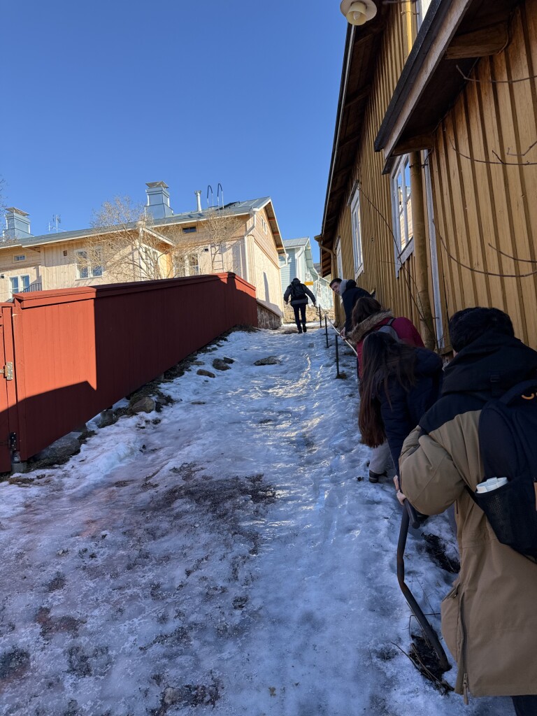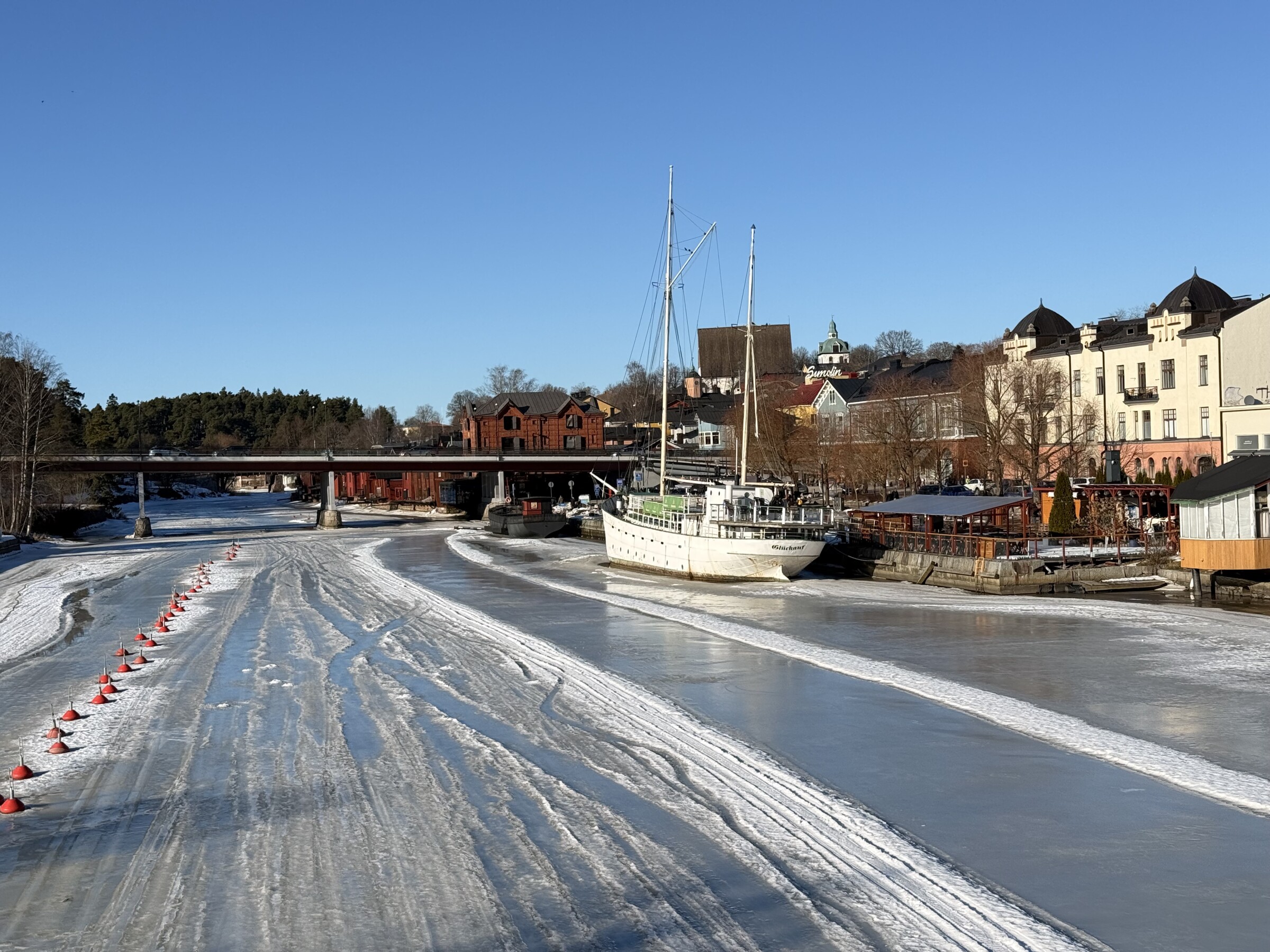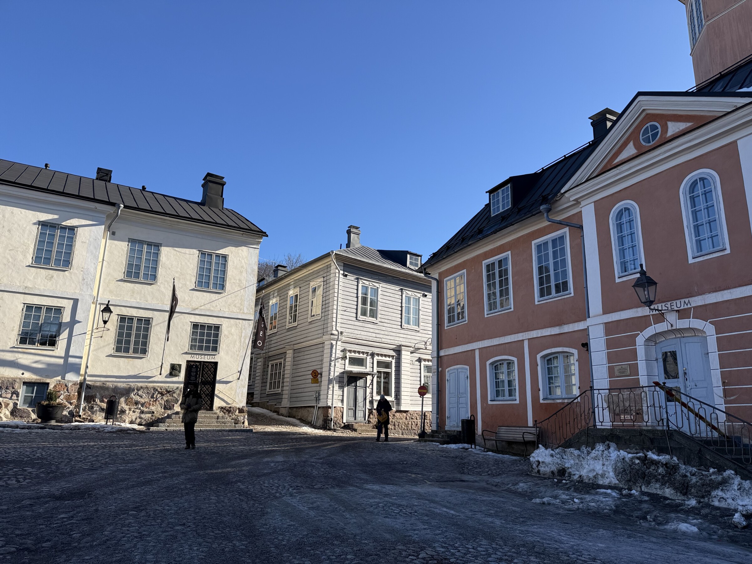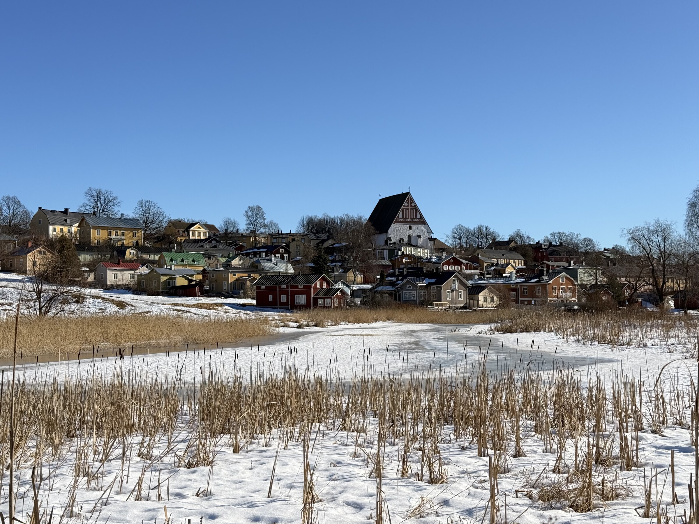 Het komt perfect uit voor de stedentripjes deze dagen: vandaag was Porvoo aan de beurt, een pittoresk stadje dat iets ten oosten van Helsinki ligt. Bij 8 graden was het gewoon perfect weer om zonder jas buiten te lopen! Wel is het soms nog behoorlijk glad (vooral op schaduwplekken) doordat smeltende sneeuw ‘s nachts weer bevriest…