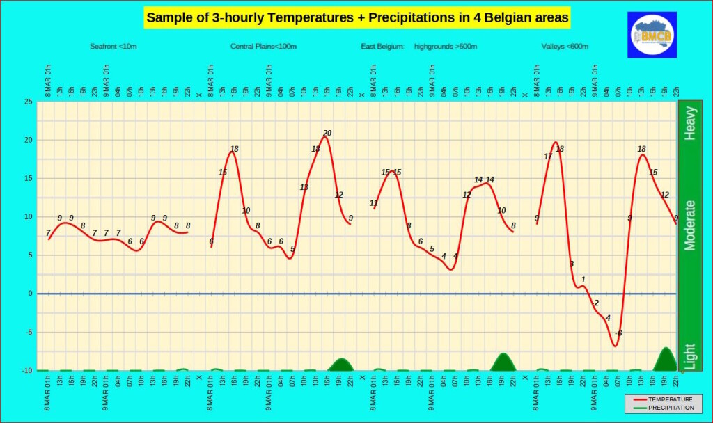 Het wordt zeer zonnig in de meeste regio's, behalve aan de kust waar lage stratus of mist kan blijven hangen. In het binnenland ontwikkelen zich stapelwolken met kans op lokale buien, vooral ten zuiden van de Samber-Maas-as.