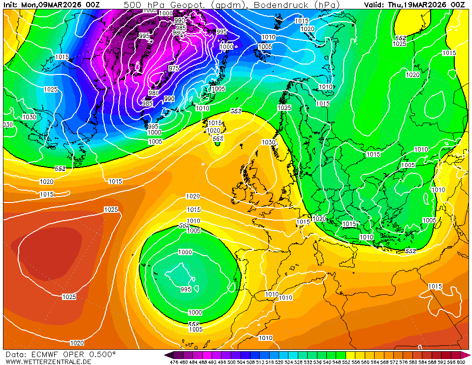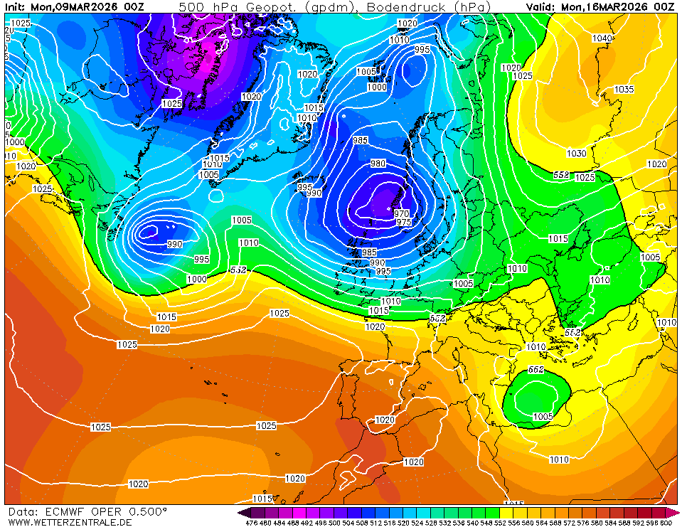Op 168u nog een diepe depressie, paar dagen later ligt er een hogedrukgebied.