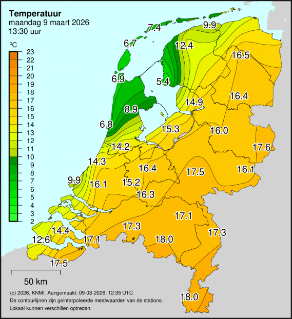 Re: Achterhoekia, Brabantia en Limburgia al ruim boven de 16 graden.