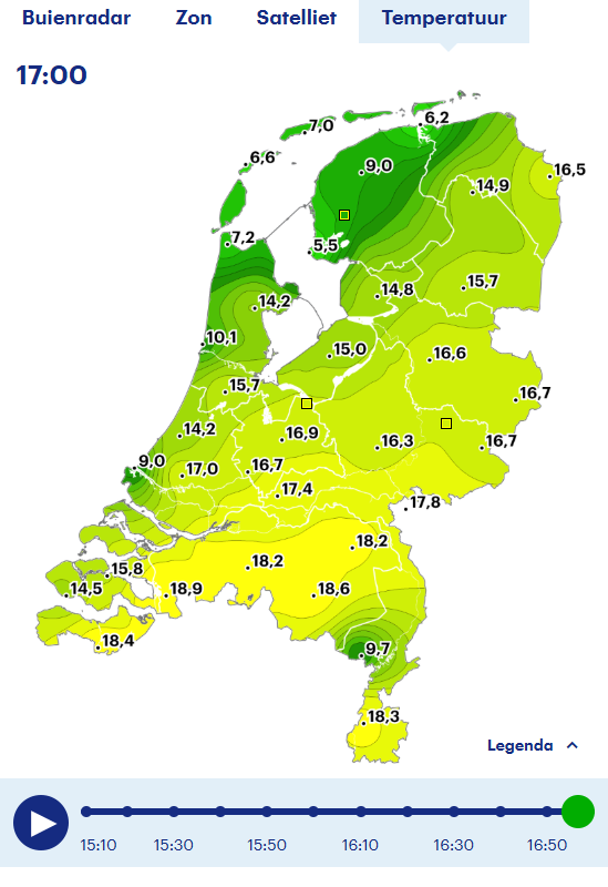 Geweldige temp verschillen vandaag Tx16,2 Tact 7,2 mist:
