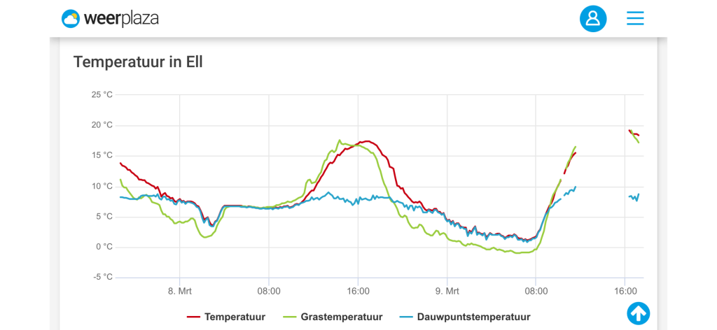 Geweldige temp verschillen vandaag Tx16,2 Tact 7,2 mist: