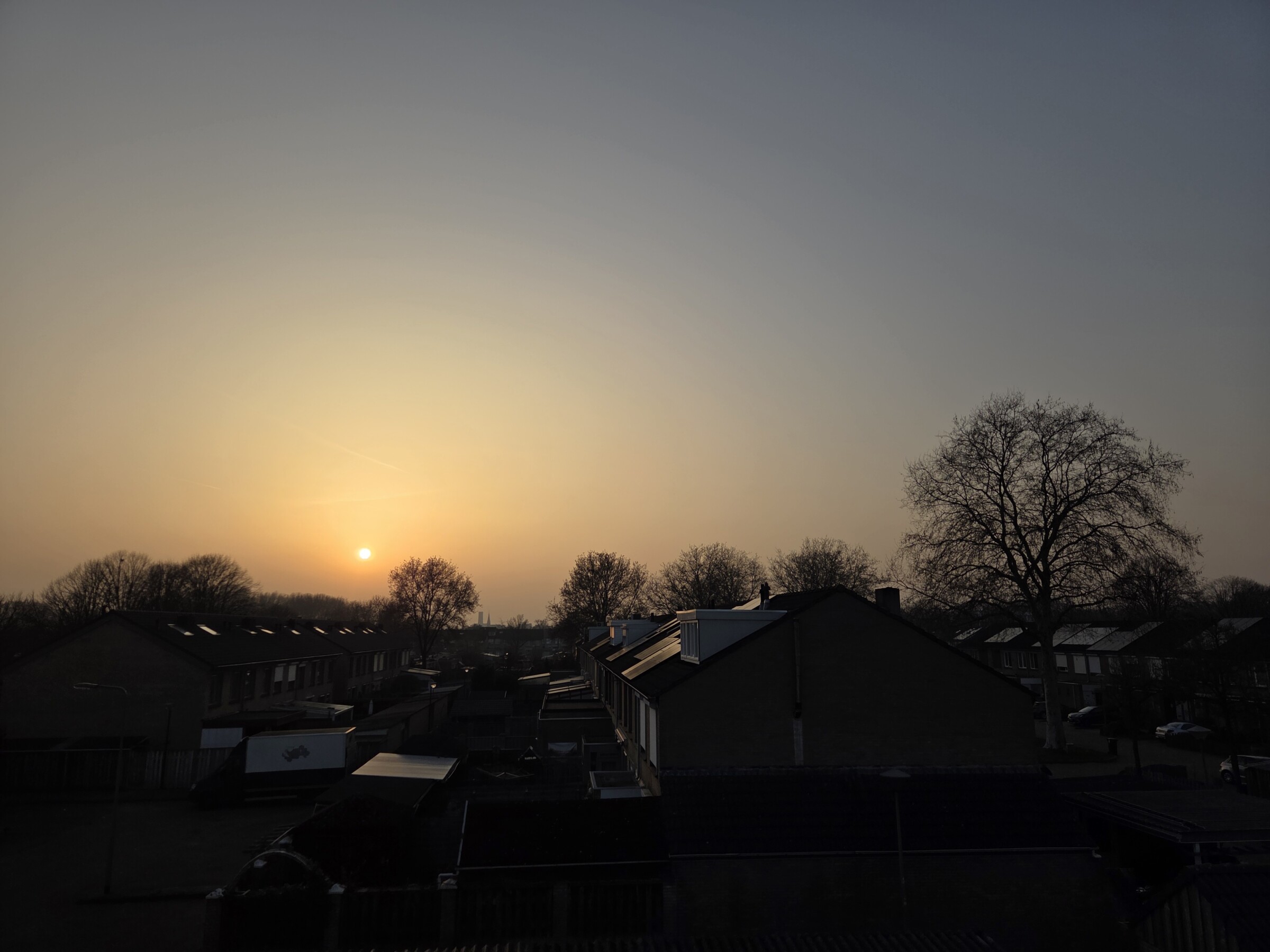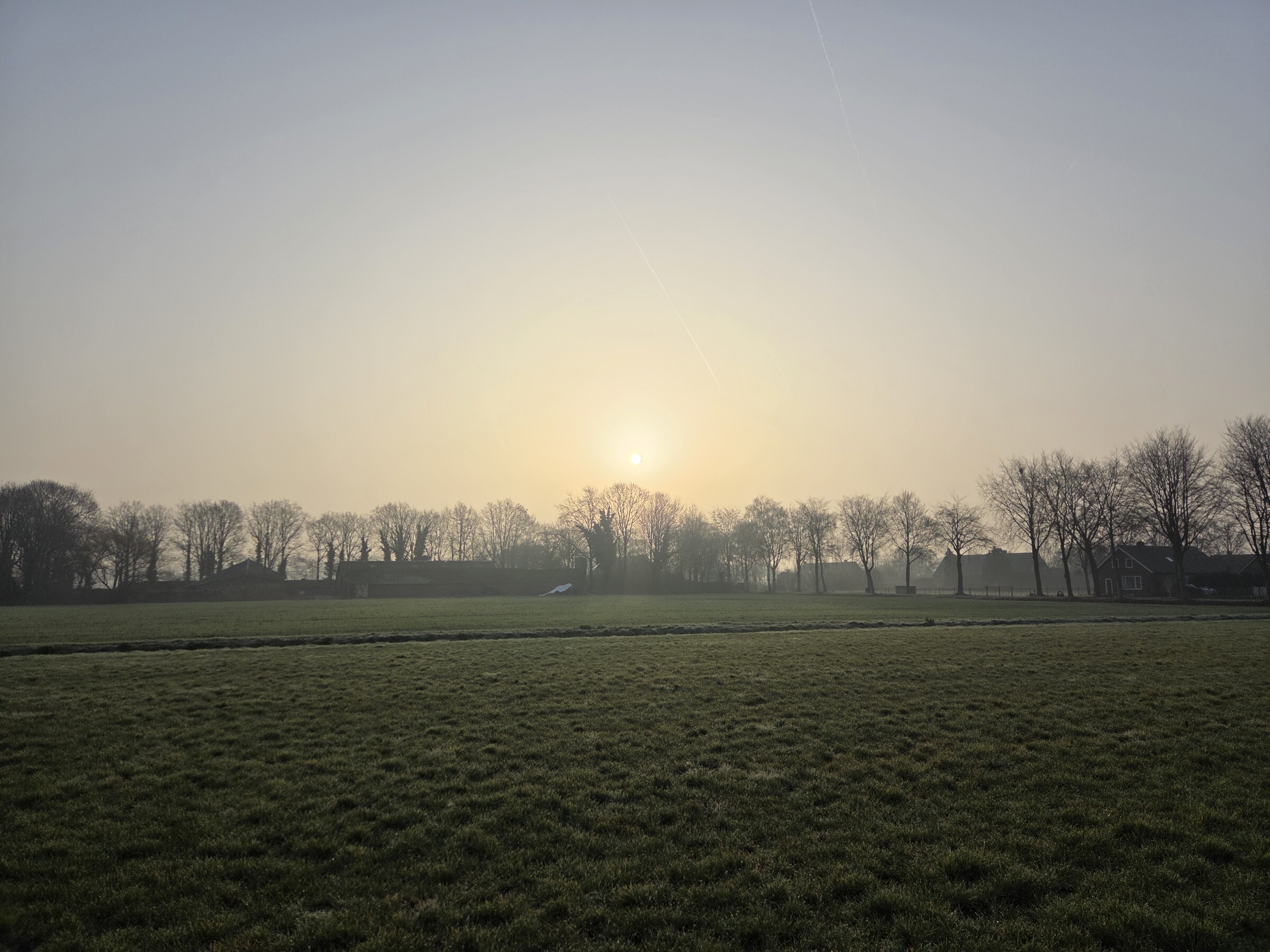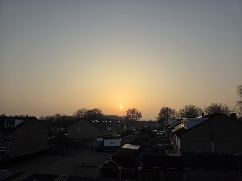Meteen ook even de zonsopkomst vanmorgen. Nadat de dunne mistlaag rond 0800 uur verdampt was.