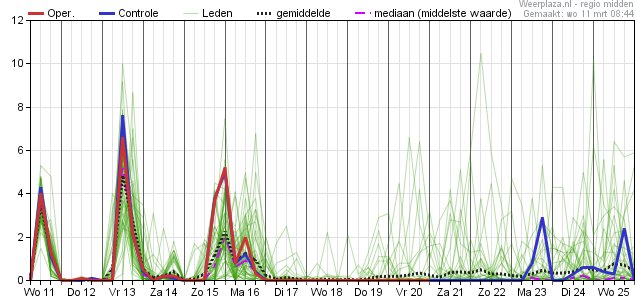 Ook bij ECMWF is vrijdag een behoorlijk natte dag, waarna de kans op neerslag zaterdag gering is.