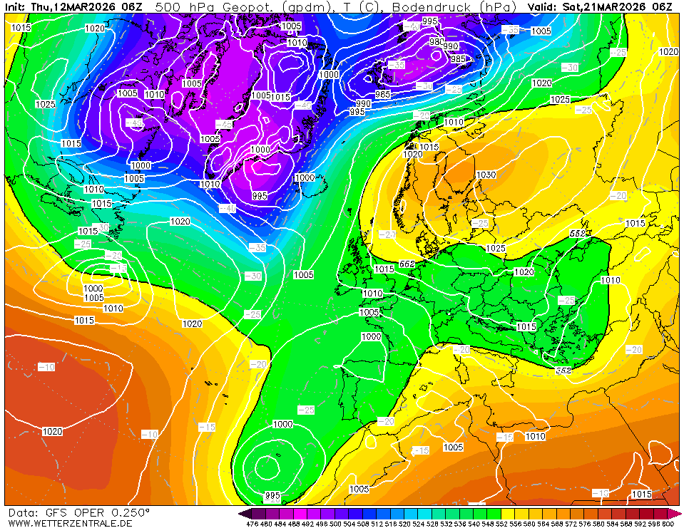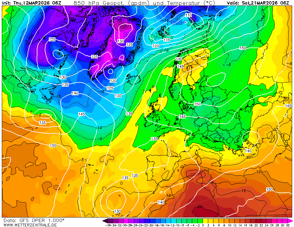 Bovenluchttemps eerst aan de frissere kant, daarna komt zachtere lucht vanuit het zuiden aanzetten.