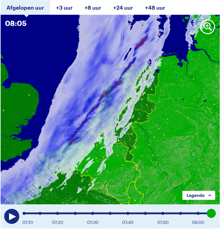 Hier nu de koufrontpassage, intense plensregen & storm, beestenweer.