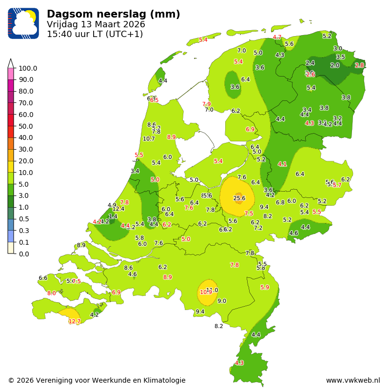 Dagsom 6,1 mm, maandsom 16,0 mm
