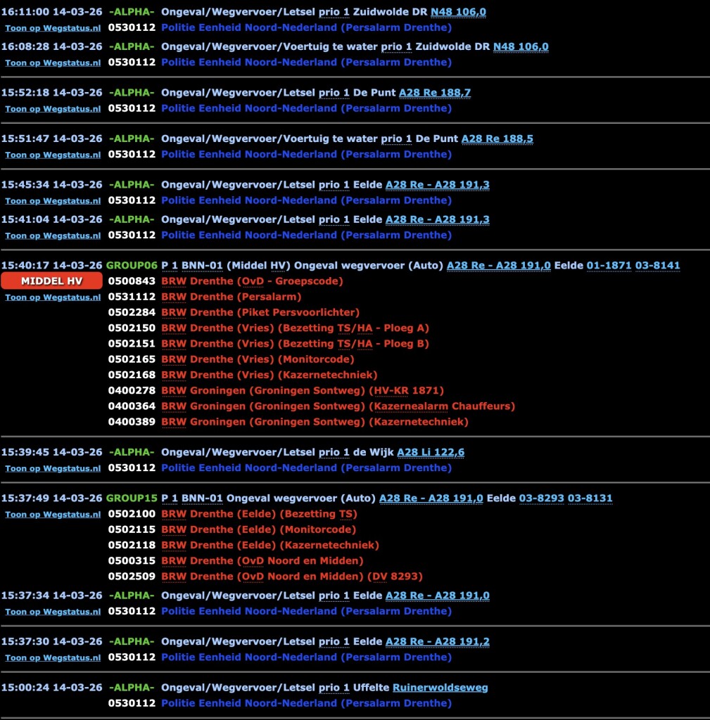 Een hoop ongevalsmeldingen in de provincie Drenthe.