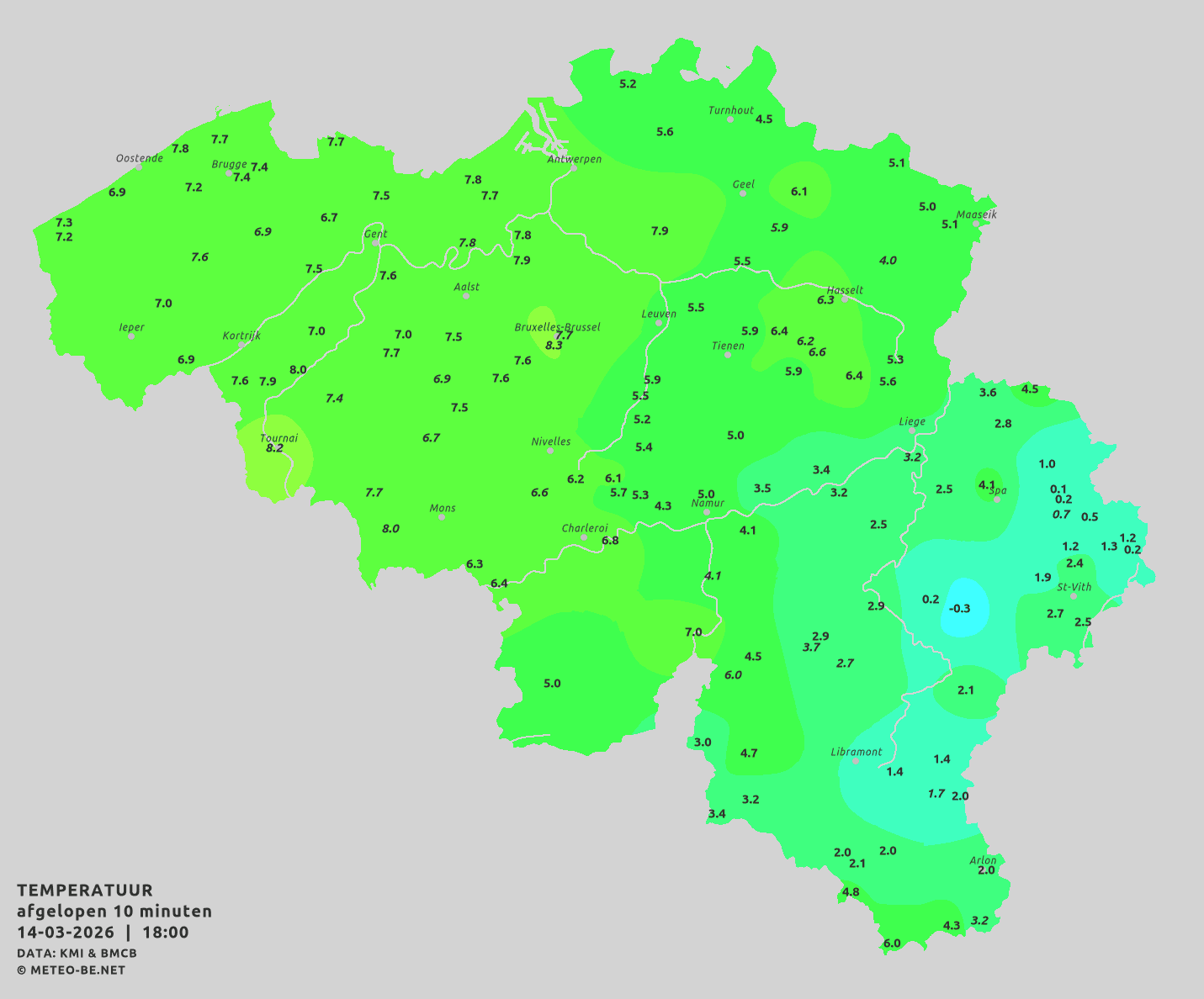 Mont-Rigi ca 10cm, nog sneeuwbuien onderweg bij 0 graden