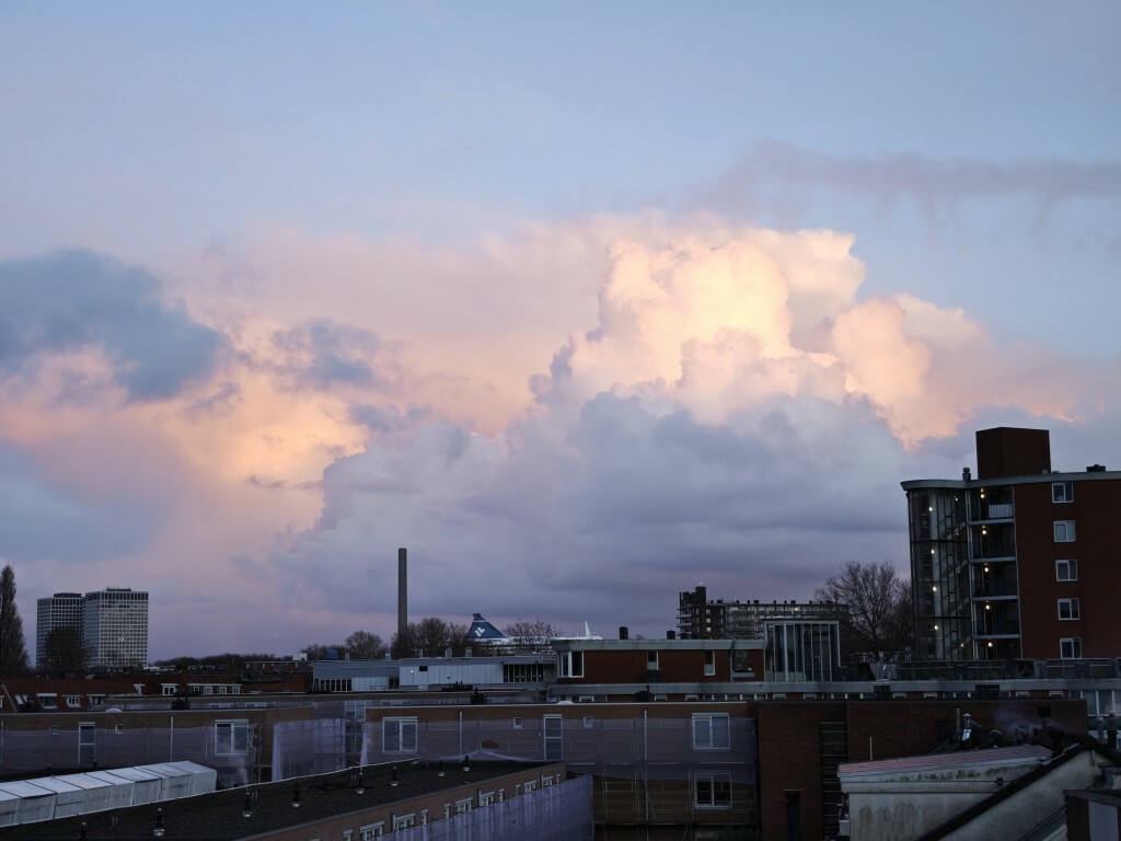 Ook hier mooie wolkenlandschappen te zien in de wegtrekkende buienstoring, in totaal 6 mm, waarvan er 4 in de nacht viel