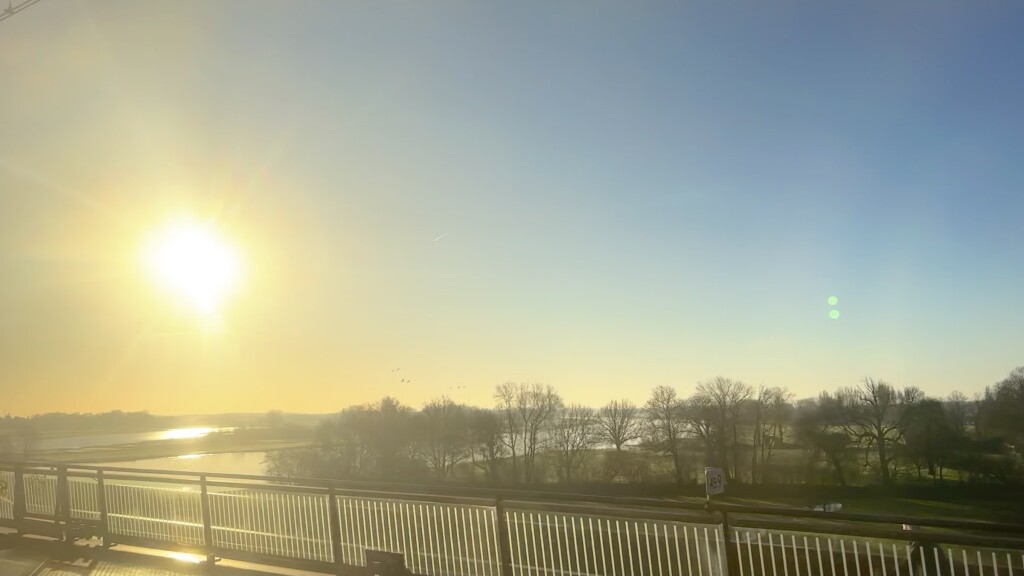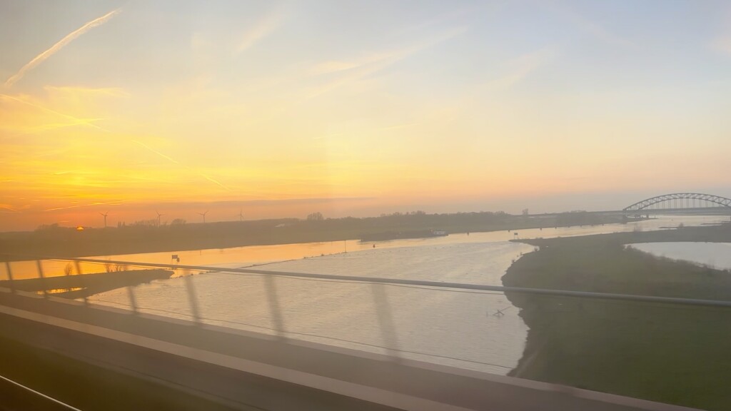 Mooie zonsopkomst vanuit de trein & Skyline Rotterdam