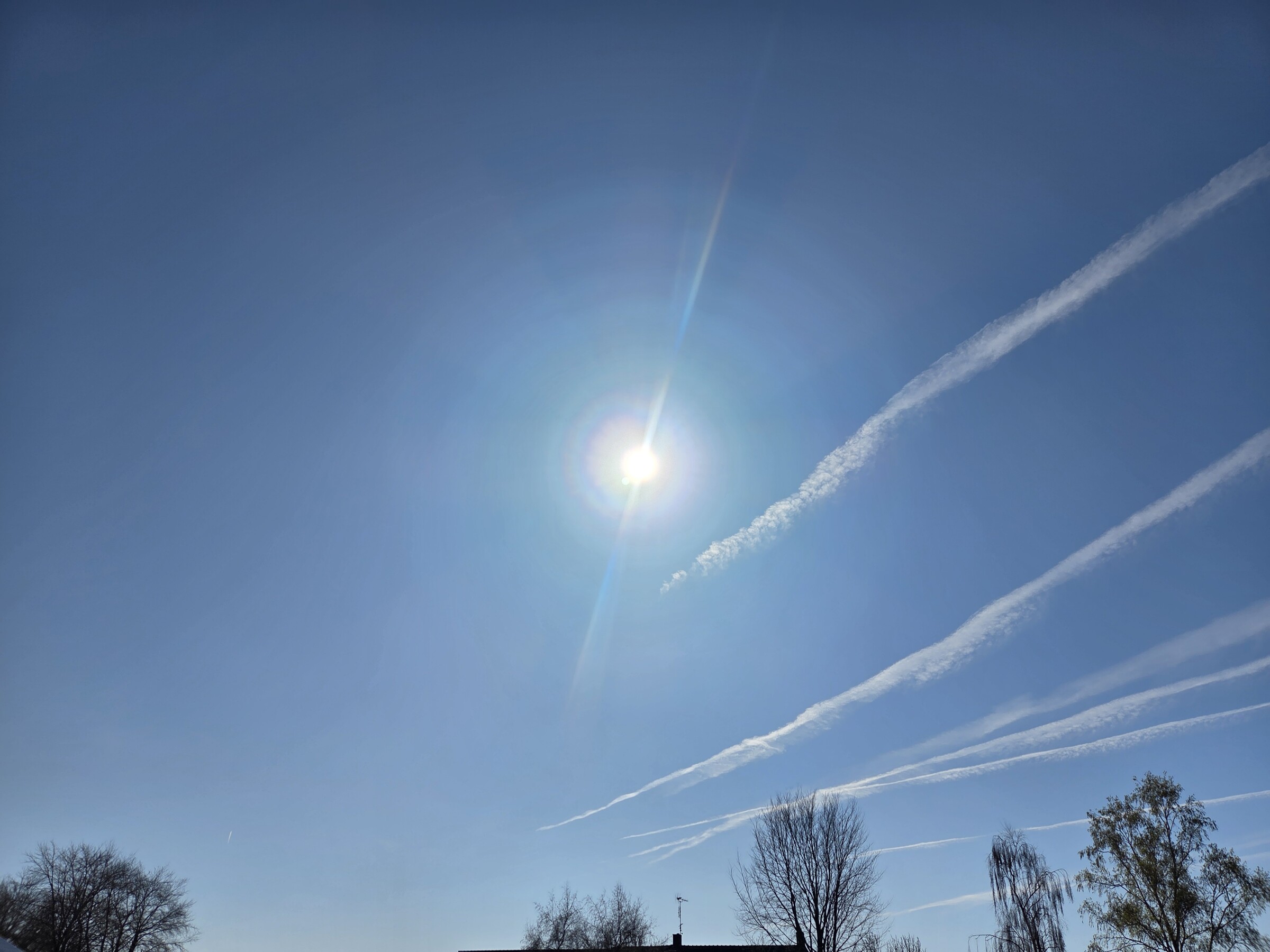 Aardig wat vliegtuigstrepen. Tact 14.9°C
