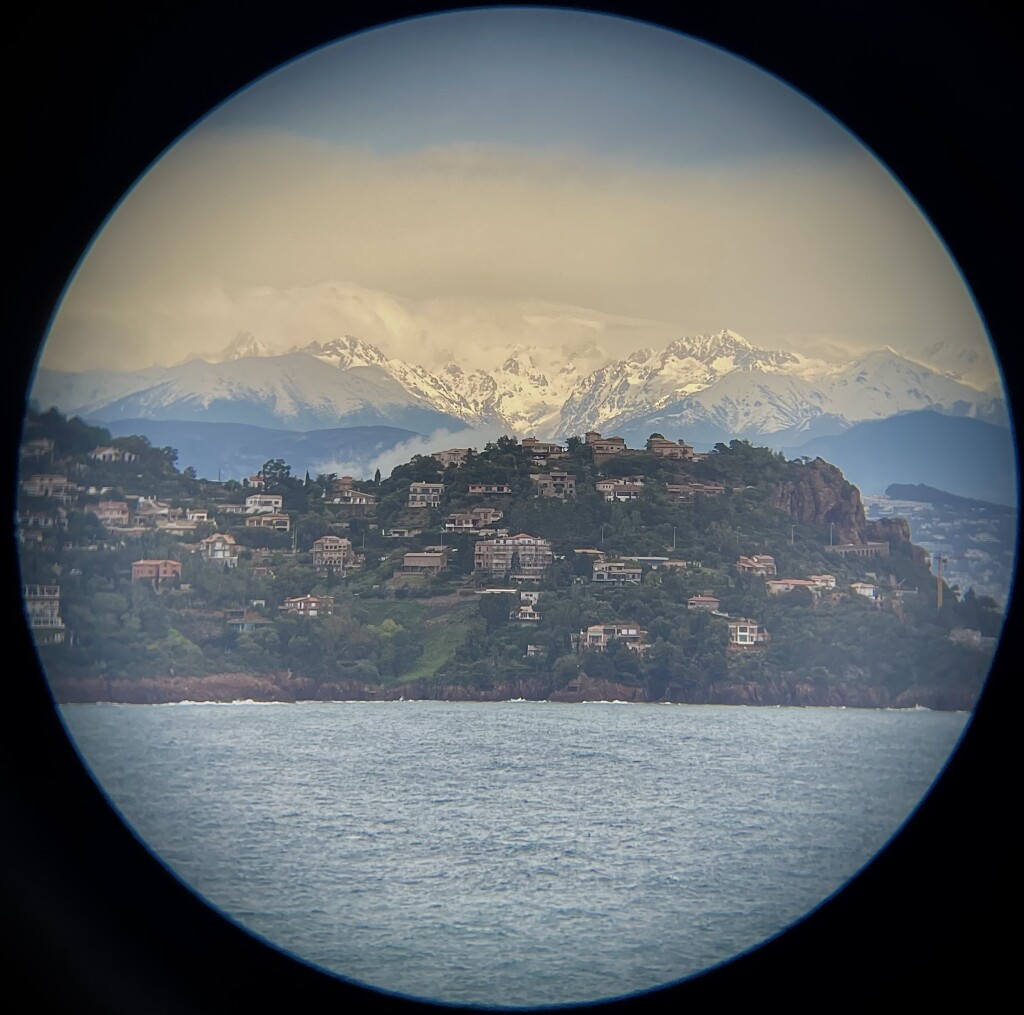 De tmax was hier rond de 16C en actueel is het rond de 8,5C. Daarbij was het in de ochtend en begin middag behoorlijk bewolkt en regende het ook. In de loop van de middag echter brak de zon door en werd het prachtig weer. Daarbij maakte we ook een rondrit naar het Esterel gebergte en hadden we prachtig uitzicht over de Mercantour Nationaal Park. Hier de foto: