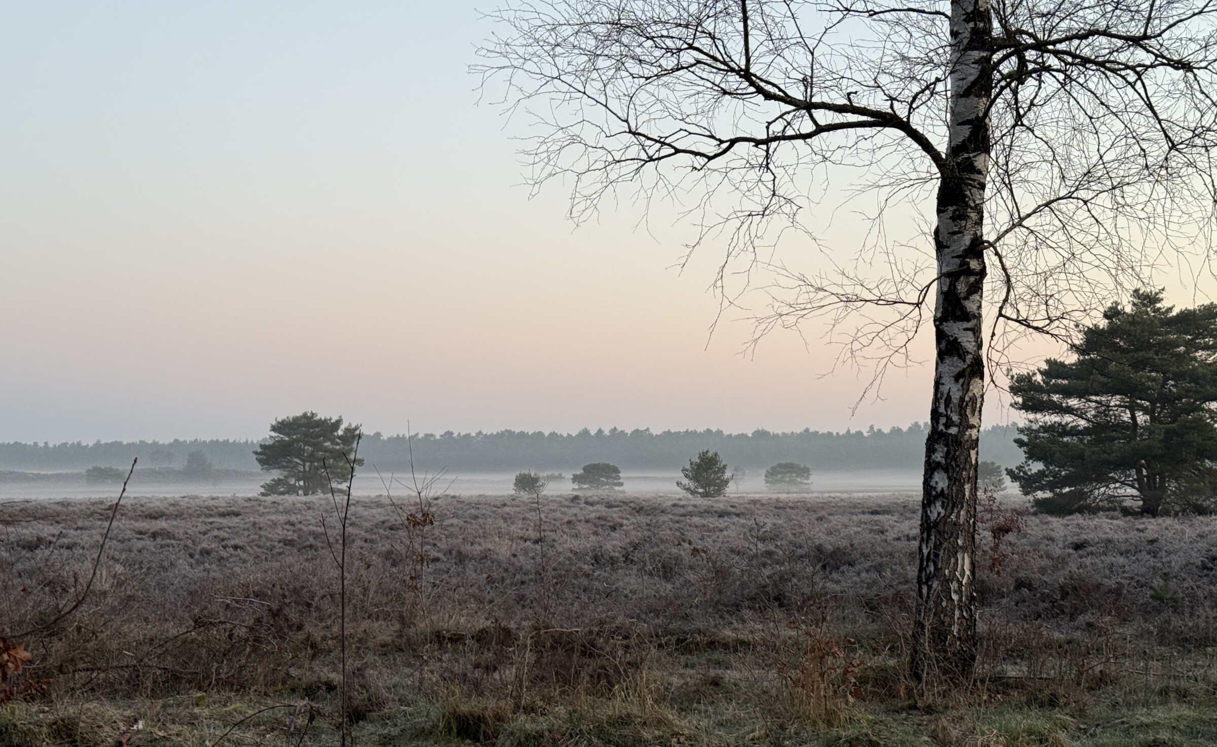 Hier op de Gortelse heide, tussen Vaassen en Elspeet. Het zag er weer even winters uit!
