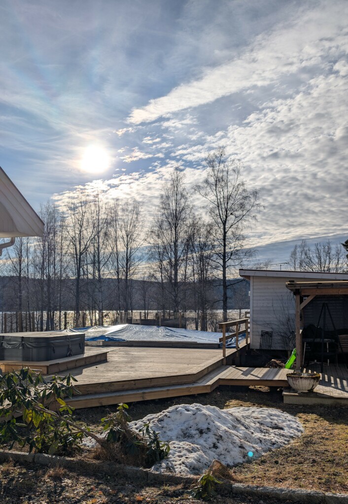 Overigens een prachtige lentedag hier met een tx van 13,5 graden. Laatste sneeuwhopen smelten nu snel in de tuin. De sleebaan is nu zo goed als verdwenen