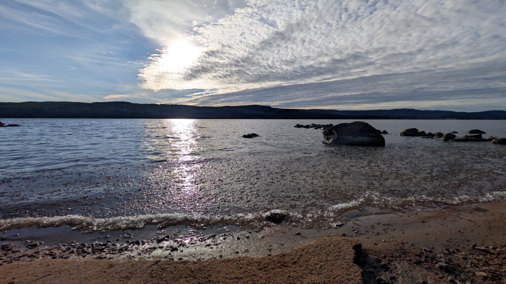Nog wat drijfijs aan de kant van het meer. Het meeste ijs is vanmiddag weggedreven richting Torsby, is vandaag echt snel gegaan want vanochtend lag het nog voor 80 procent bedekt en gisteravond nog kruiend ijs kunnen waarnemen.