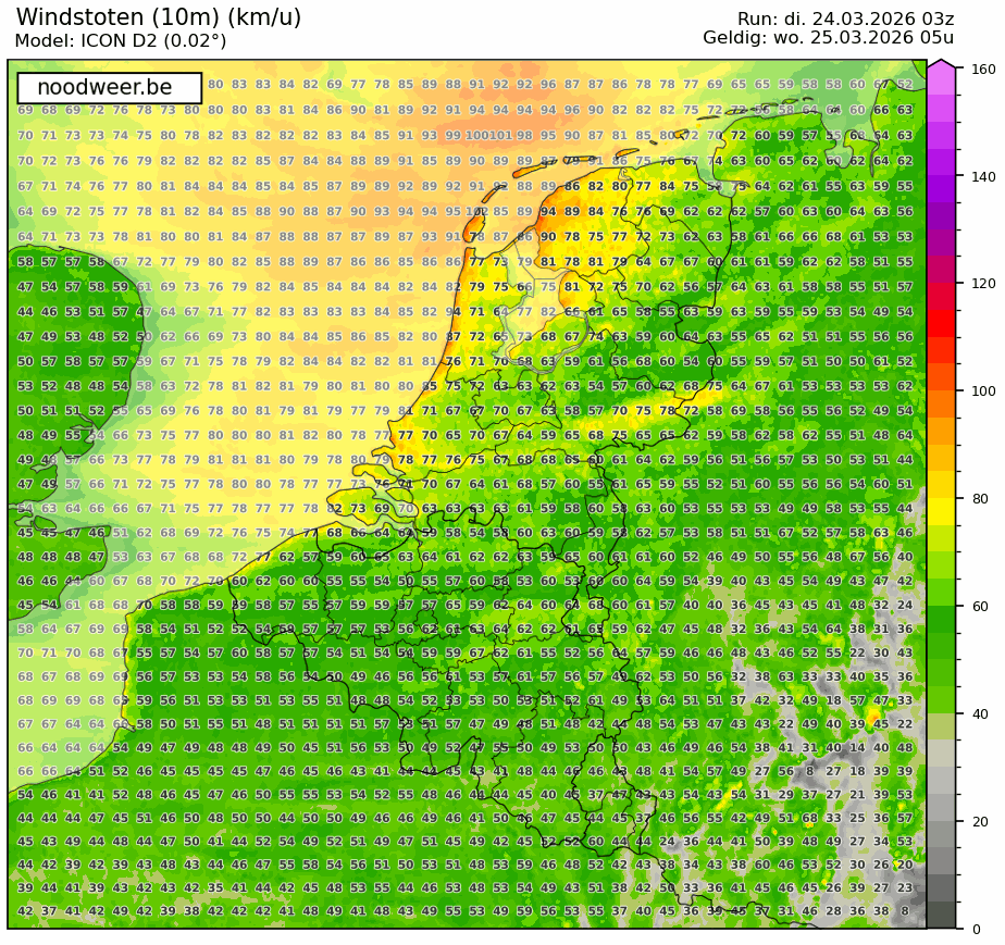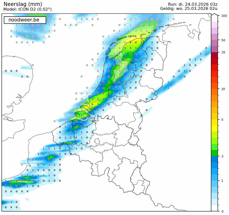 . Focus van het slecht weer wellicht tussen 1u en 3u vannacht.