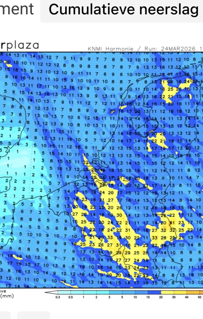 Amper neerslag voor het uiterste westen door de UK schaduw. Hopelijk krijgen we wat meer dan de verwachte 4 mm, want iedere druppel in het voorjaar is goud waard.