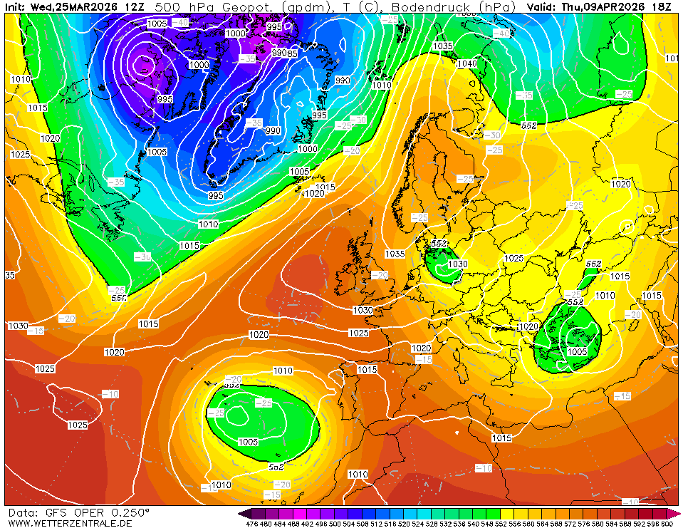 GFS 12z Oper komt begin april met een hoog in het Verboden Gebied