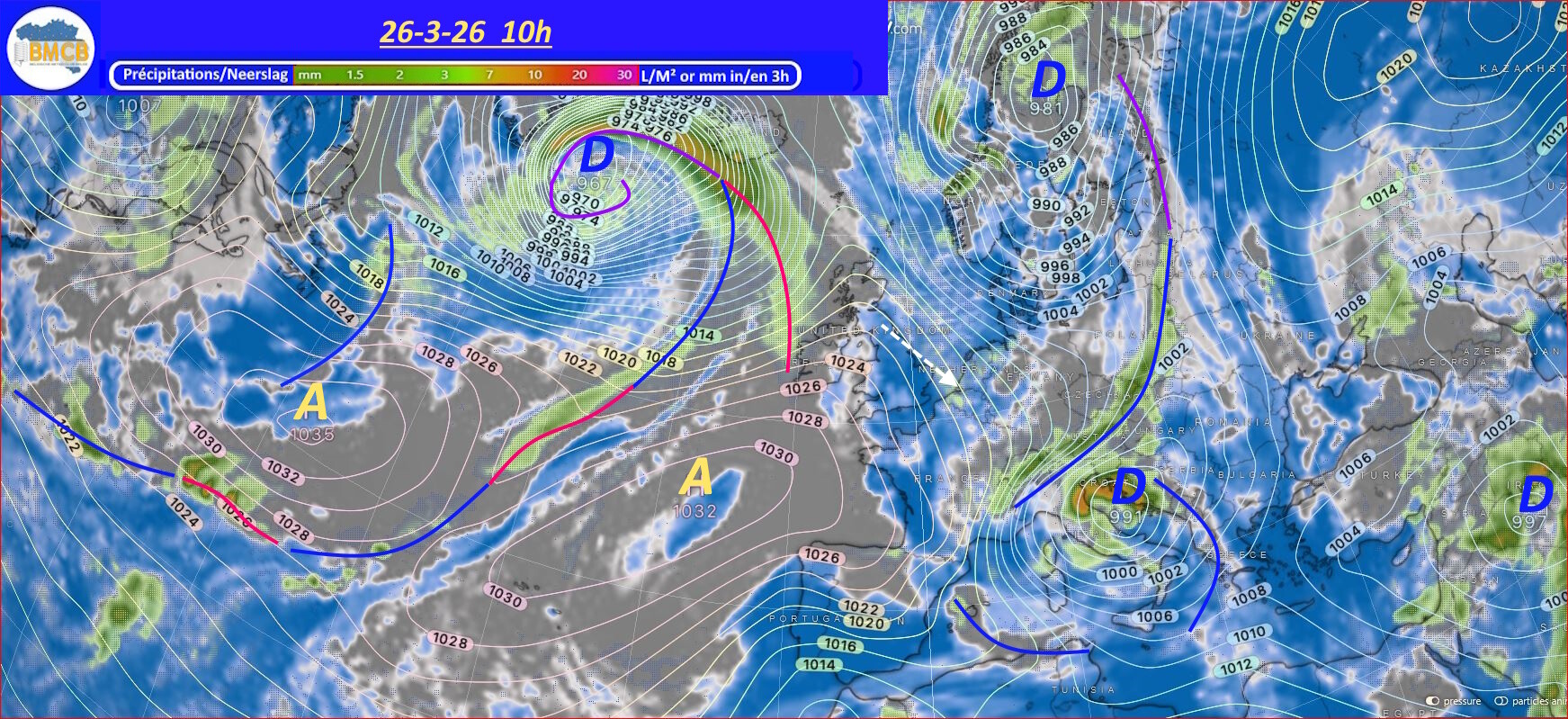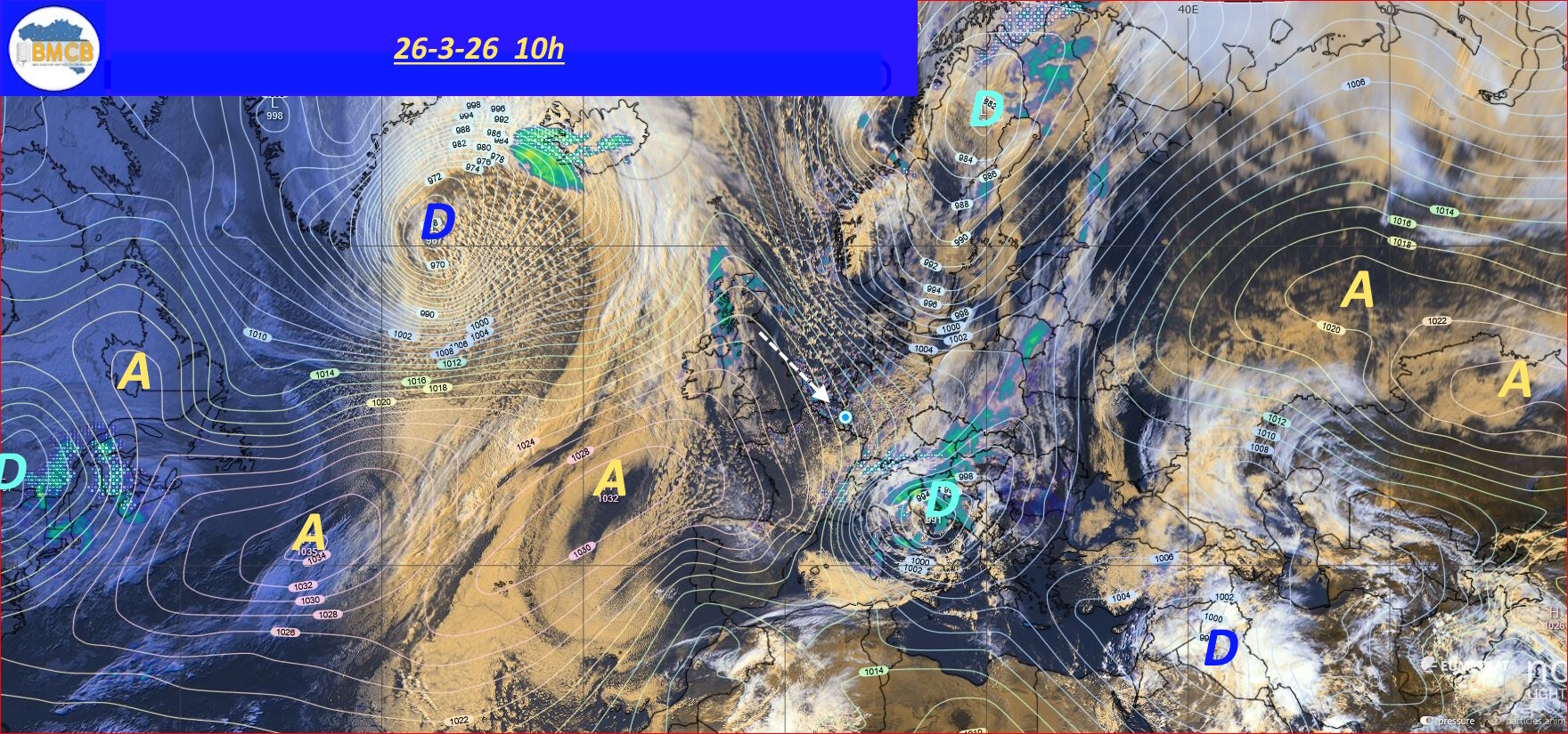 Volgens de laatste verwachtingen zal een hogedrukcel van ongeveer 1027 hPa, afkomstig van een omvangrijk hogedrukgebied van 1037 hPa boven de nabije Atlantische Oceaan, zich vanaf 1 april ontwikkelen over onze regio's en Duitsland. Deze evolutie zou zorgen voor een duidelijke verbetering van de weersomstandigheden in het hele land.