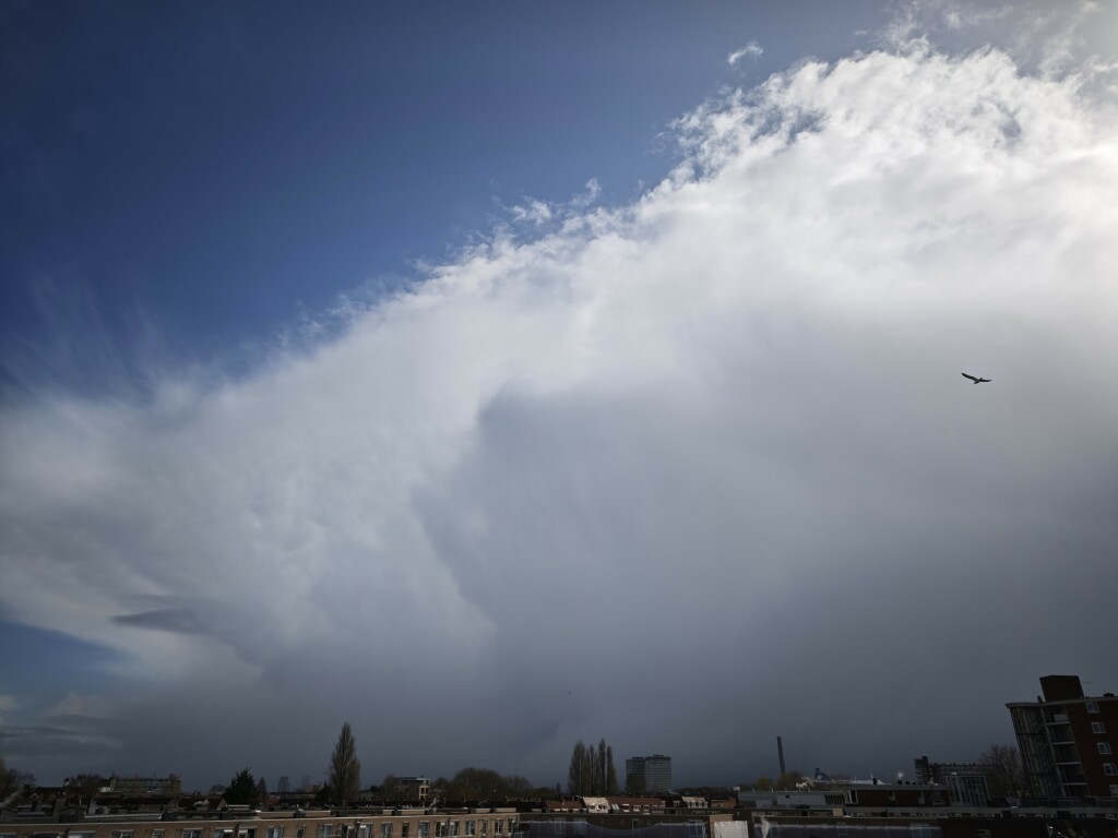 Re: Mooi zicht op een naderende hagelbui te Leiden het afgelopen uur.