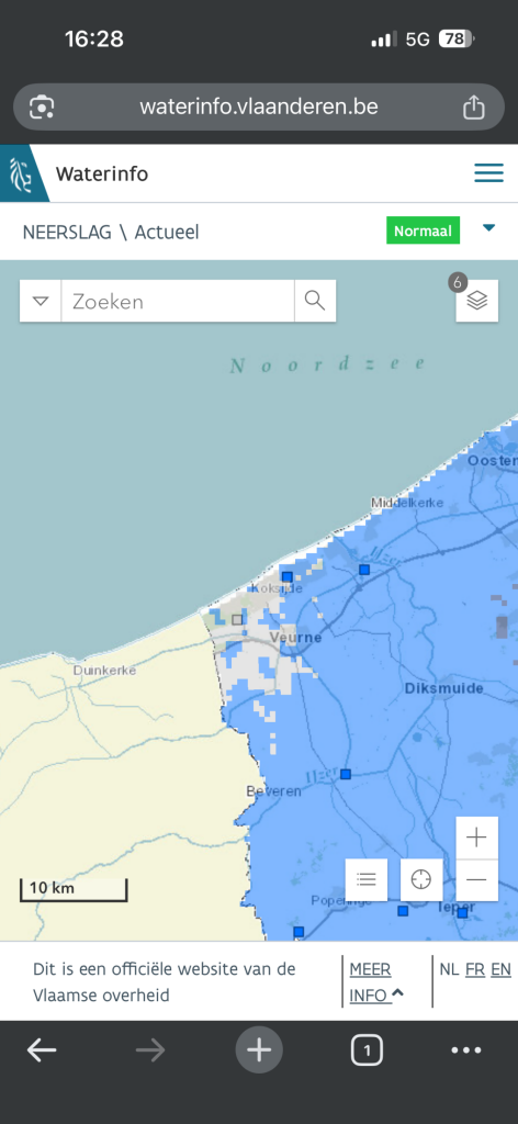 Je ziet het ook op waterinfo, geen meetbare neerslag in het uiterste westen van België jammergenoeg