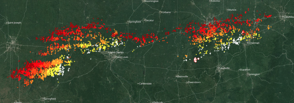 Actueel lijntje met onweer bij Cincinnati (VS) + link webcam