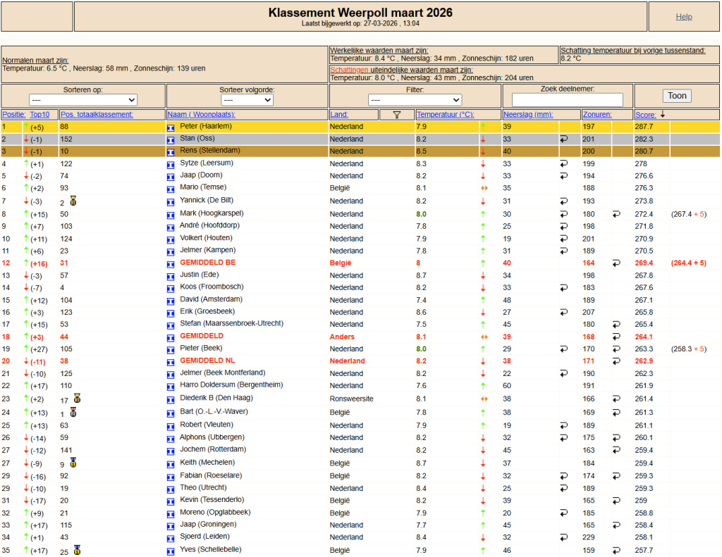 Tussenstand Weerpoll mrt '26 t/m 26-03