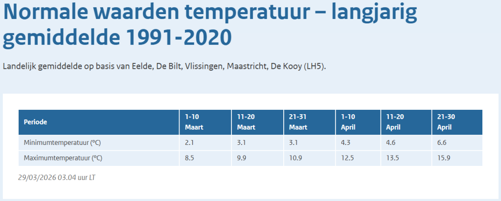 Vandaag en de komende twee dagen ligt de maximum temperatuur in de buurt van wat normaal is voor de tijd van het jaar (zie laatste afbeelding).