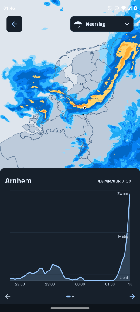 De radar liegt er niet om; het hoogst echt zeldzaam hard! Nu lekker slapen