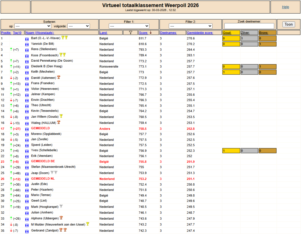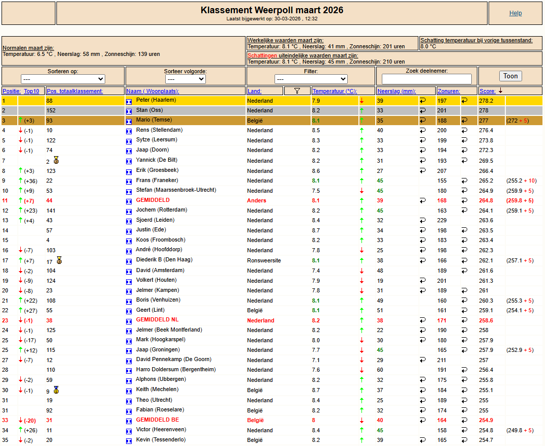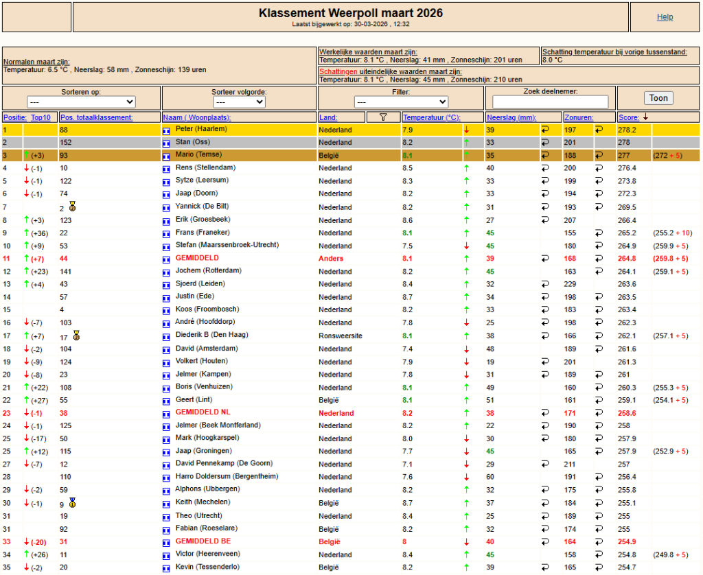 Tussenstand Weerpoll mrt '26 t/m 29-03