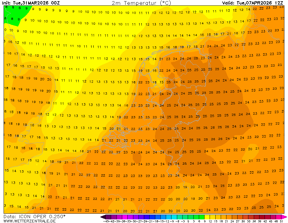 Dagrecord De Bilt staat op 21,6 graden trouwens voor 7 april.
