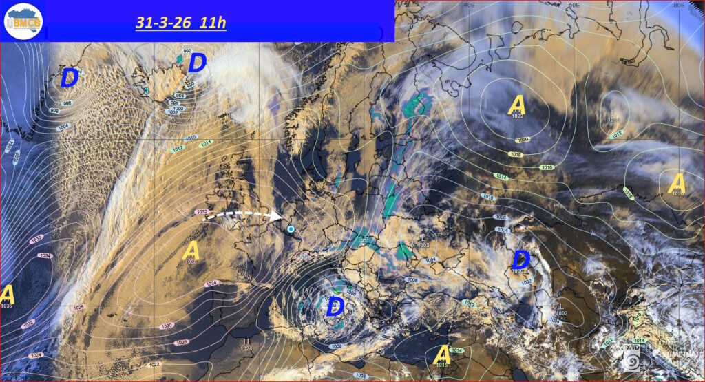 Tijdens het paasweekend en begin volgende week zal een hogedrukzone het westen van het Middellandse Zeegebied, Centraal-Europa en de Balkan bedekken. Onze regio komt dan in een stroming tussen zuidwest en zuid, met een geleidelijke en merkbare stijging van de temperaturen.