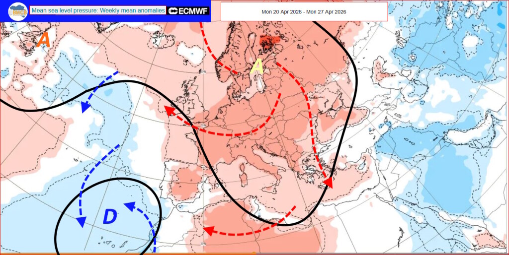 De laatste middellange termijnprojecties wijzen op de geleidelijke opbouw van een omvangrijk hogedrukblok tussen de poolgebieden, Centraal-Europa en het westen van het Middellandse Zeegebied tijdens de week van 13 tot 20 april. Tegelijkertijd zouden lagedrukzones zich ontwikkelen boven het noorden van Egypte en ten westen van de Britse eilanden.