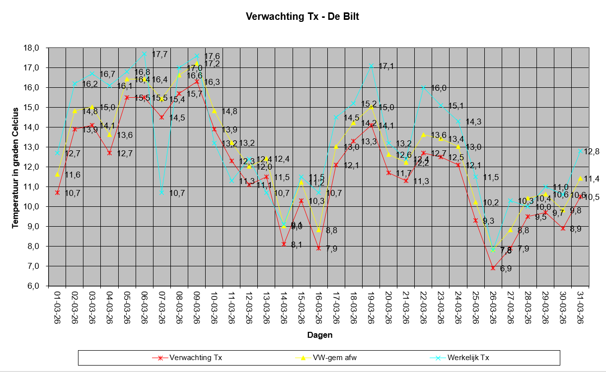 Afwijkingen GFS voor Tx in lente 2026 (maart)