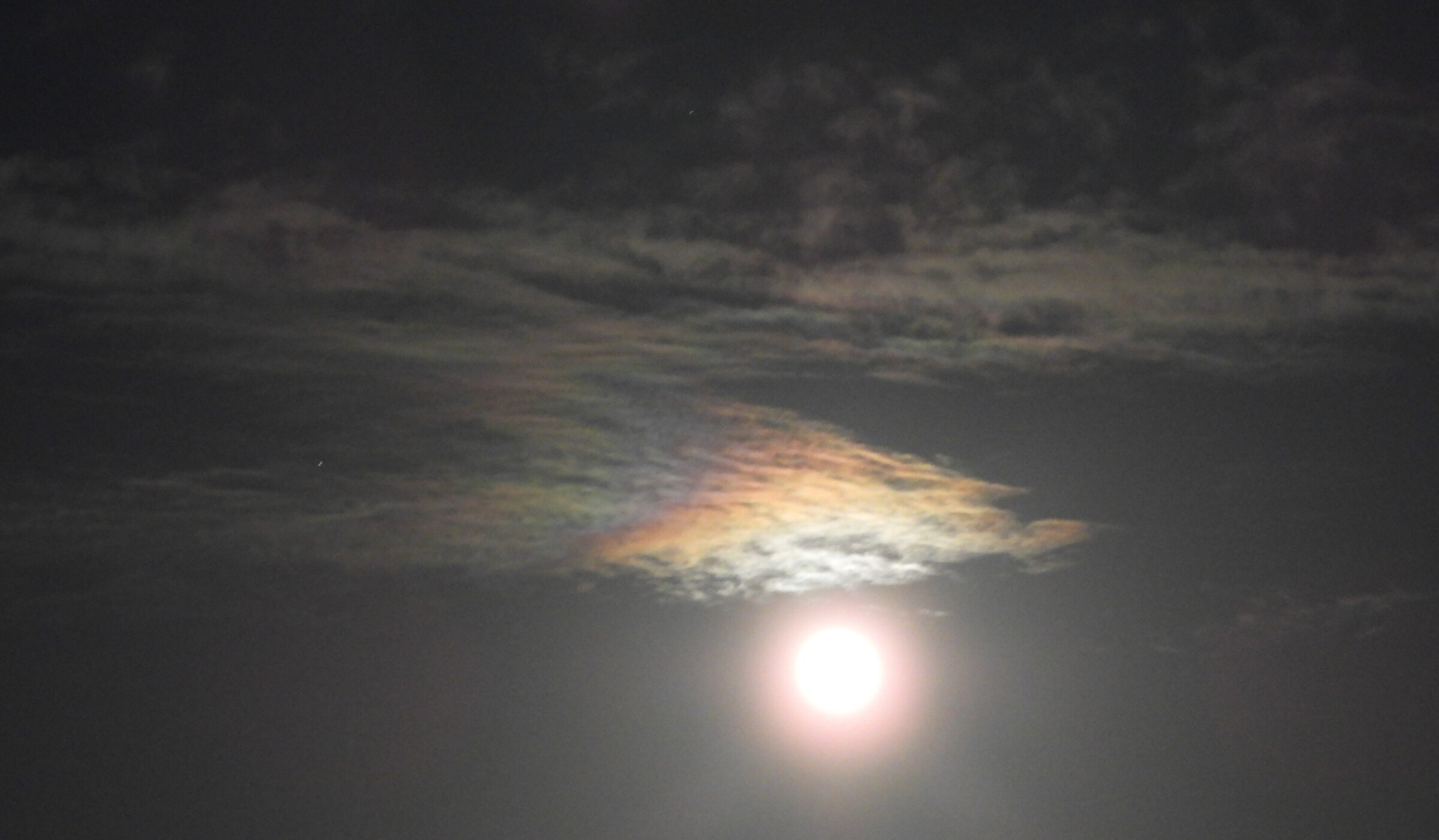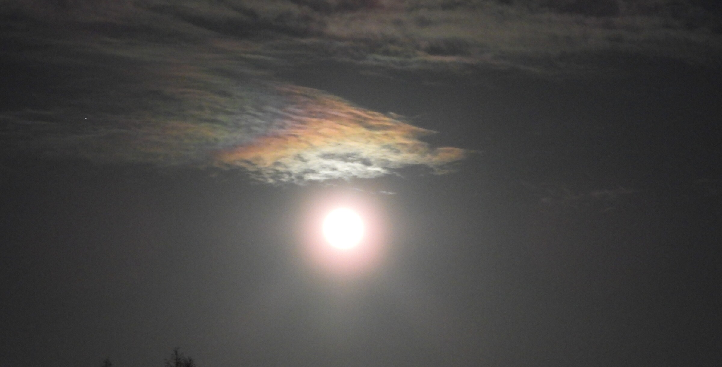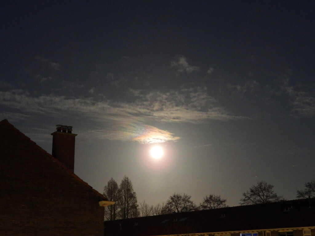 Irisatie nabij de maan.