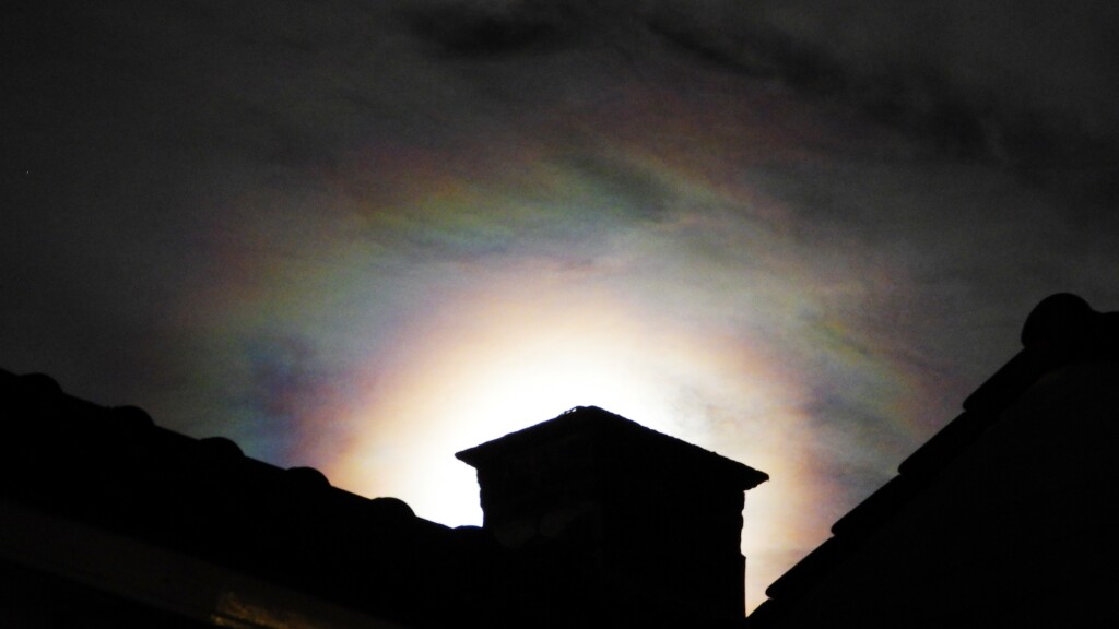 Irisatie nabij de maan.