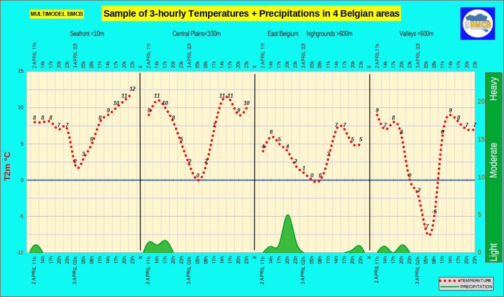 De temperaturen stijgen licht tot ongeveer 12°C aan de kust, 10 tot 11°C in de laagvlakten en 7 tot 9°C in de Ardennen.