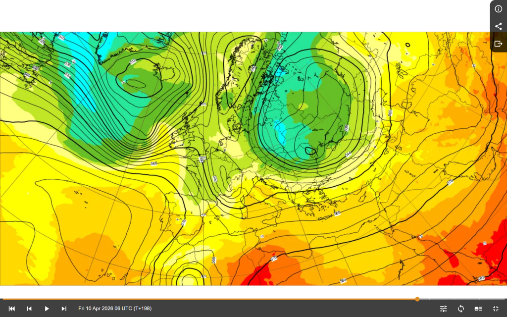 Ik vermoed dat een aantal opties in het ensemble dit (afgezwakt) tot bij ons laten komen. Hopen van niet want dan krijg je gegarandeerd ferme nachtvorstschade...