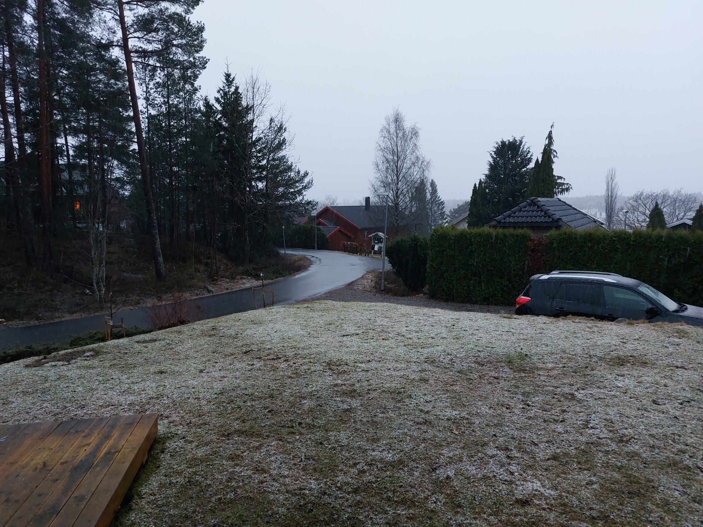 De regen is hier geleidelijk overgegaan in natte sneeuw, die nu voorzichtig blijft liggen.