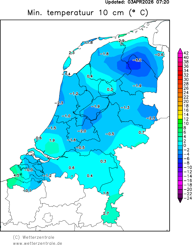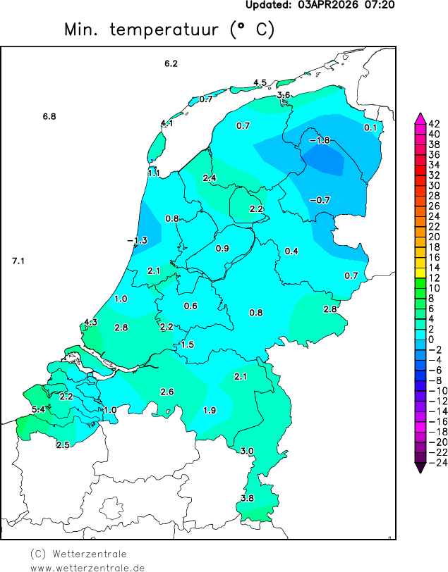 in het noordoosten en in de duinen van noord Holland. Kortom een koude nacht op diverse plaatsen.