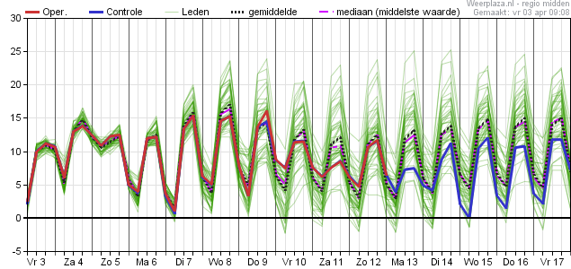 Al met al geen heel slechte pluim, kan alsnog met wat zon lekker uitpakken maar dan moeten we wel rond de 15 graden blijven hangen en niet rond de tien want dat is te koud. Wel genoeg berekeningen die voor 20 graden gaan of zelfs hoger, hoop doet leven